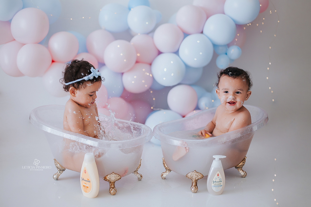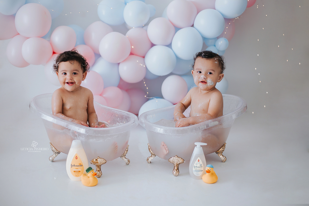 eles amou demais o smash cake deles e a hora do banho então maior festa ♥